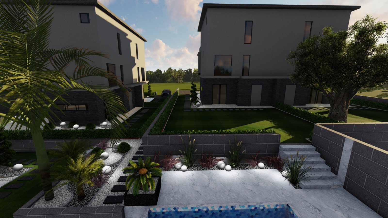 Bakım: Peyzajın uzun ömürlü olması için düzenli bakım şarttır. Sulama, budama ve gübreleme gibi bakım işlemleri düzenli olarak yapılmalıdır. Peyzaj projemizde oturma alanları, çocukların oynayabileceği çocuk oyun alanı ve çim alanı olmak üzere üç farklı alanı vardır. Müşterimize iyi günlerde oturmasını dileriz.