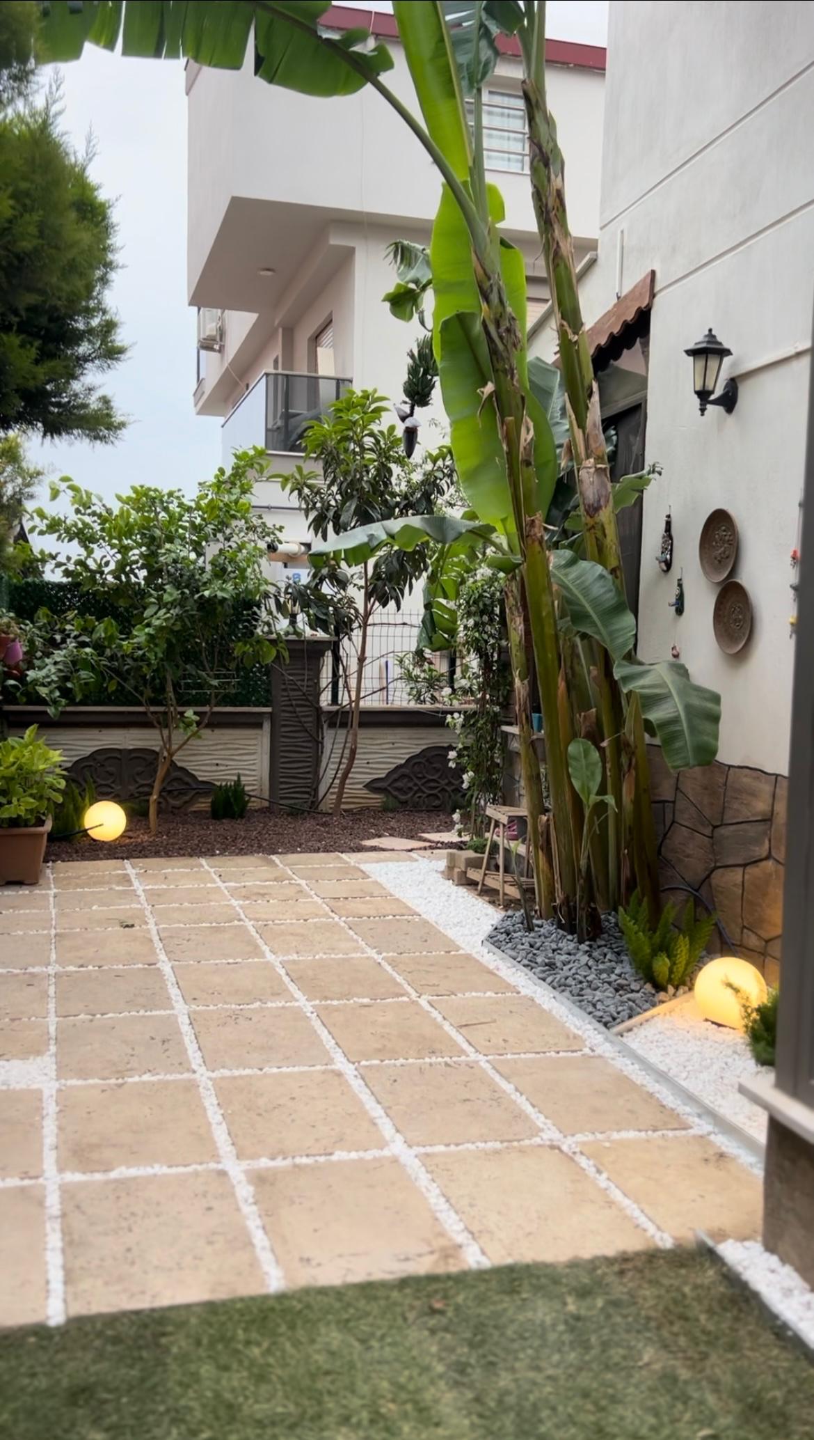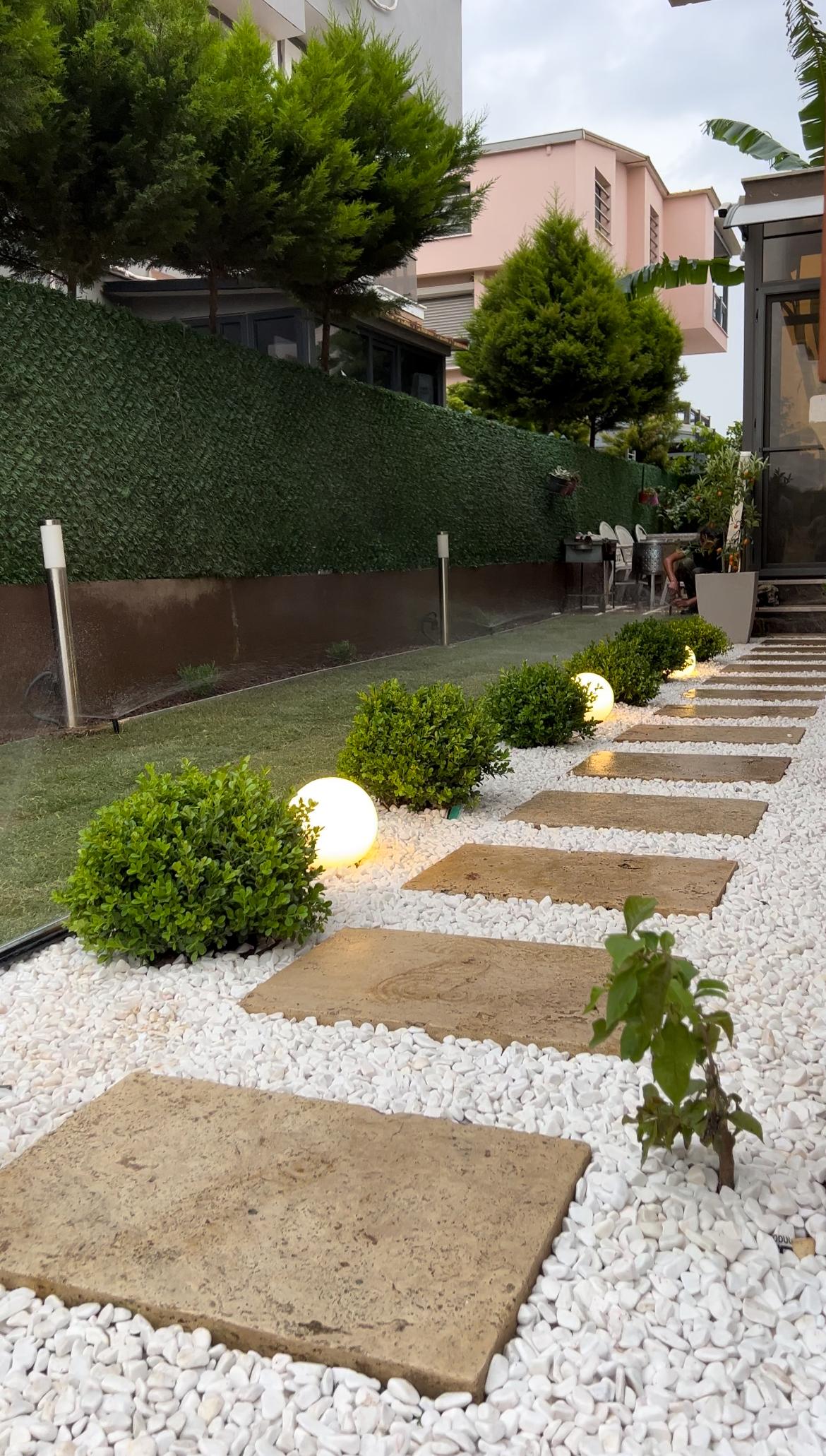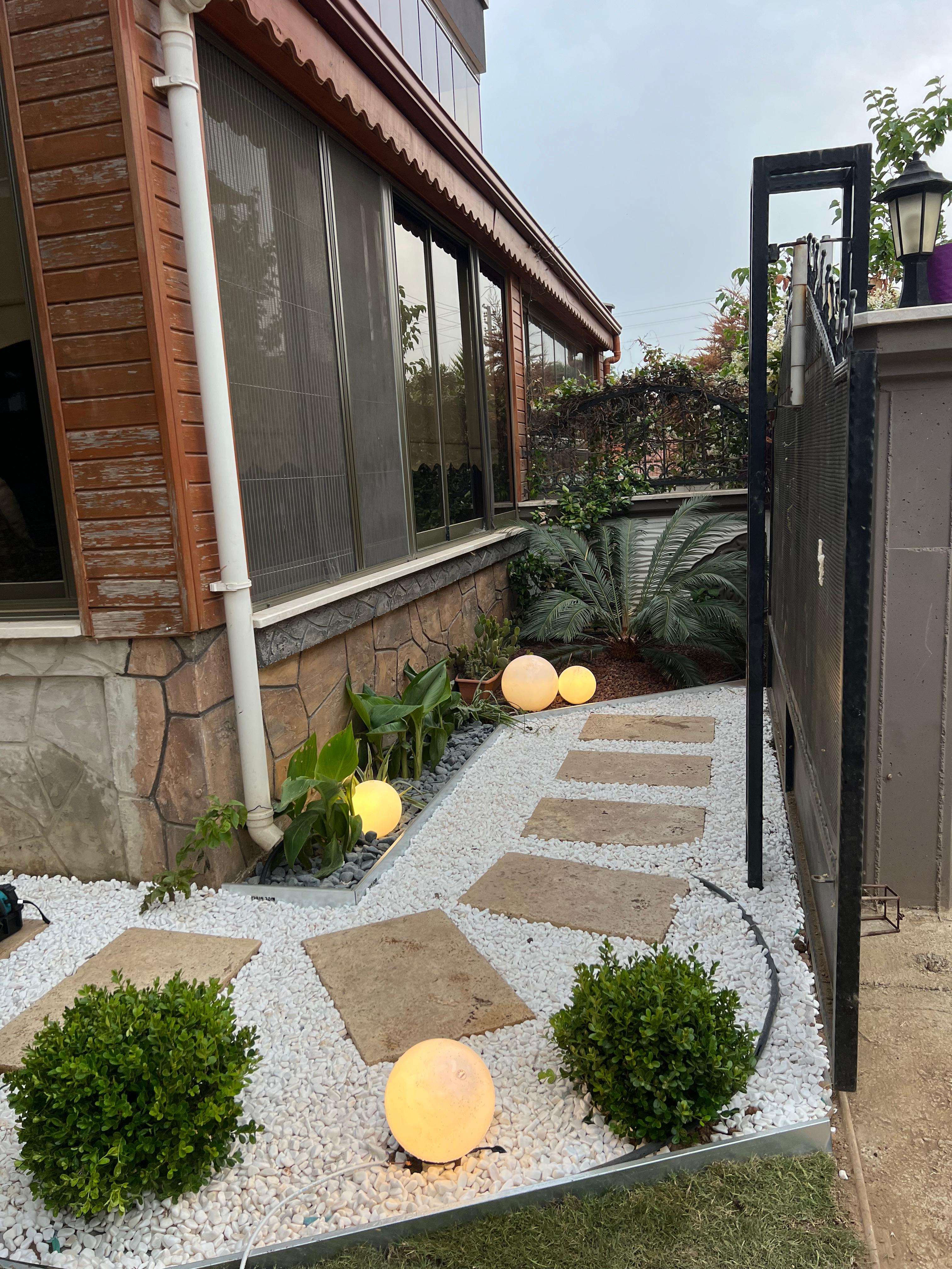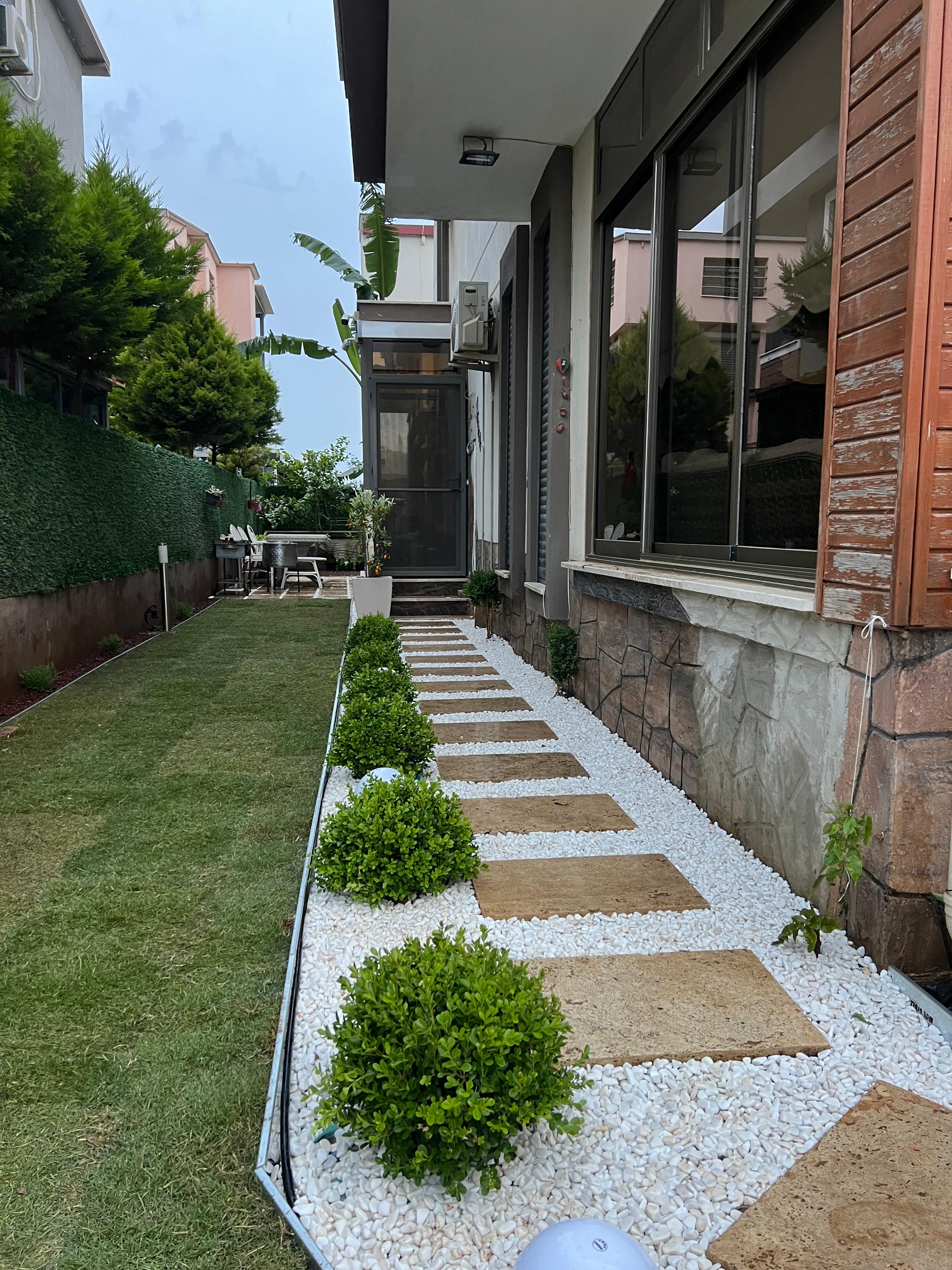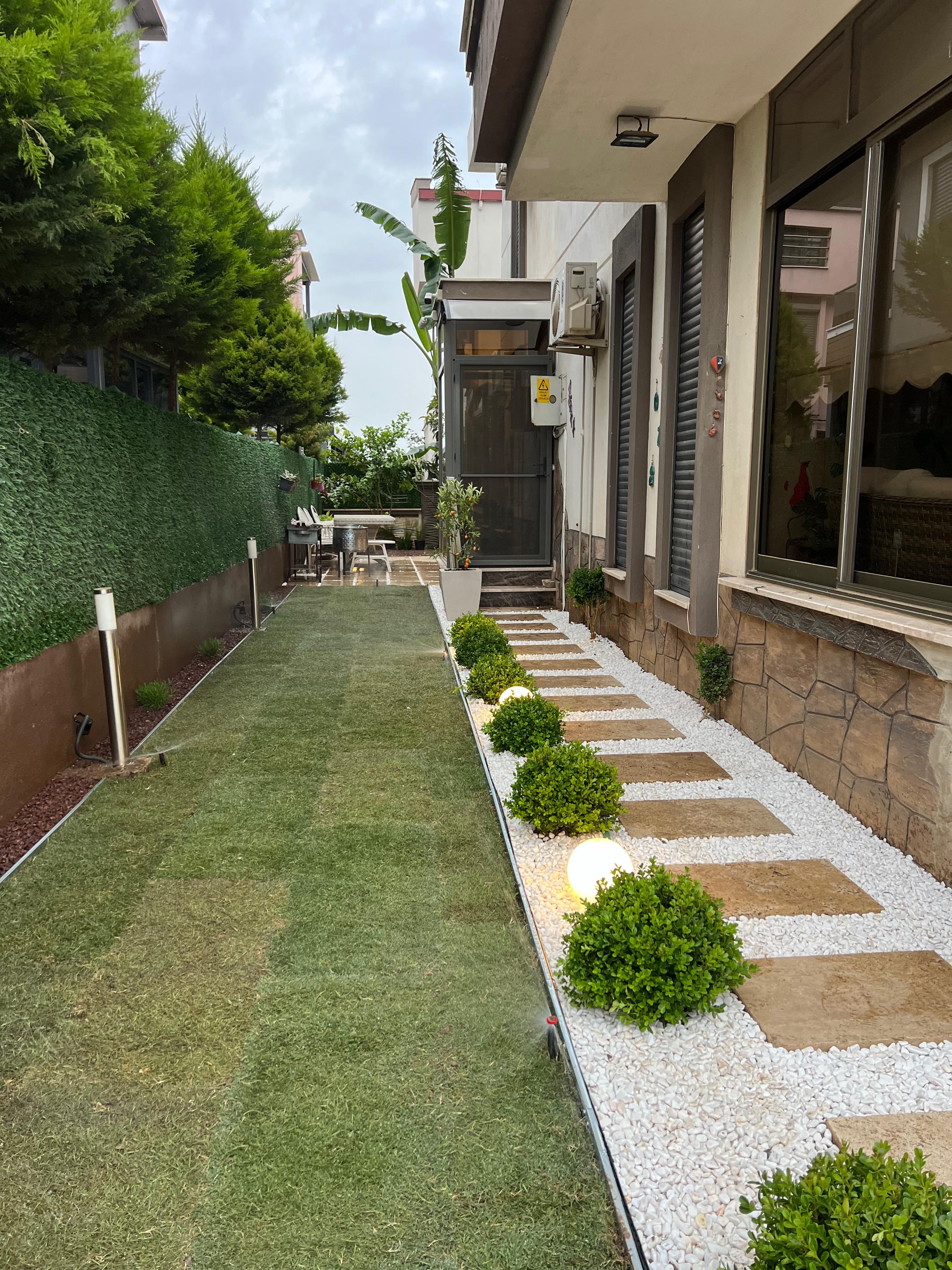 Müşterimizin tarafımıza ulaşması sonucunda projemize başlarken öncelikli olarak müşterimiz Sezin Hanım ve Serhat Bey'in beğendiği tasarımlar üzerinde yoğunlaşarak işe başladık. Öncelikli olarak müşterimizin beğendiği tasarımlarla birlikte İzmir şartlarına uygun bitkiler, bu yörede yaşayabilecek dayanıklı ve bahçesinde uzun ömürlü kullanabileceği bitkiler üzerinde odaklanarak çalışmamıza devam ettik. Ardından tamamladığımız projemizin görsellerini müşterimize sunduk. Daha sonra müşterimizin istekleri doğrultusunda proje üzerinde revizeler yapıp müşterimizin hayal ettiği bahçeyi ortaya çıkarttık. Bahçemize yaptığımız uygulamalar: Elektrikli sulama sistemi, Galvaniz ayraç işlemi, Rulo çim uygulaması, Taş cüruf tasarımları ve Bahçeye uygun bitkilerin yerleşimi.